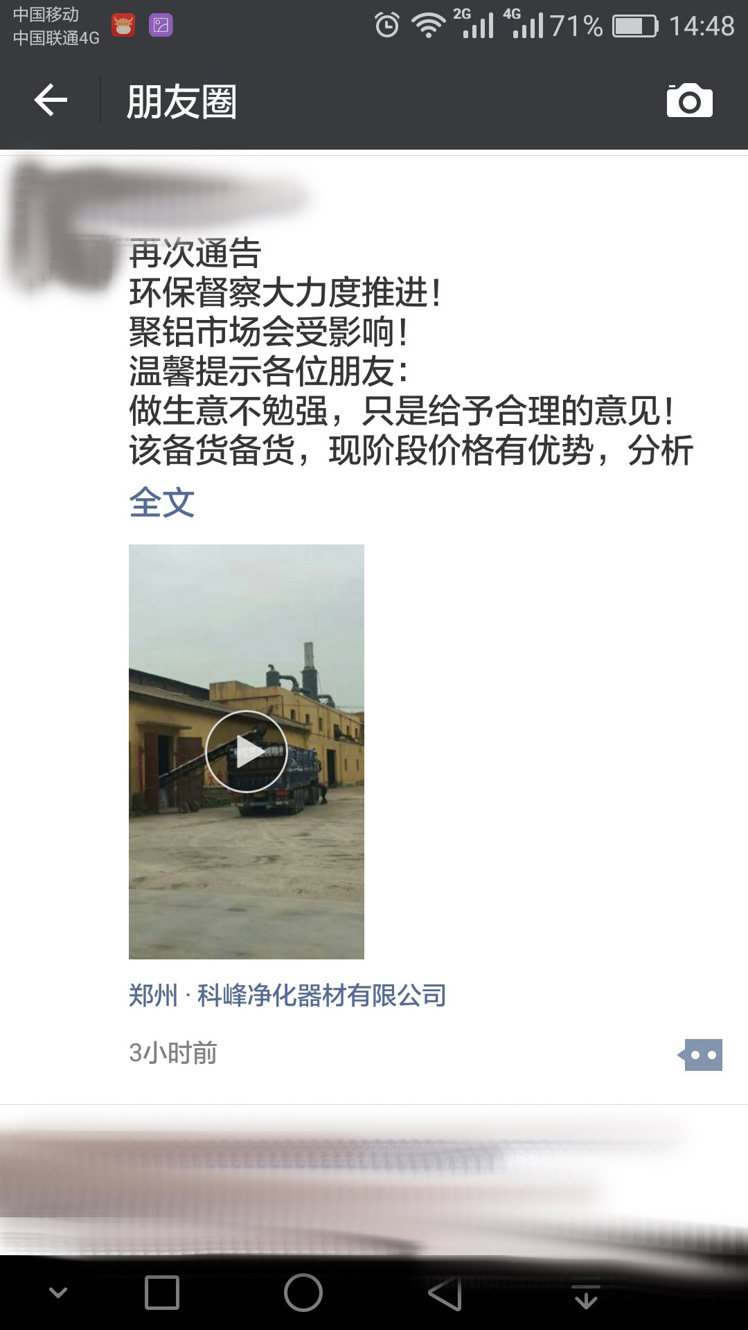 近幾日,鞏義市環(huán)保局加大了對(duì)化工企業(yè)的檢查力度,關(guān)于企業(yè)安全規(guī)章,環(huán)境保護(hù)措施等開(kāi)會(huì)嚴(yán)查。規(guī)定立即實(shí)行。關(guān)于聚合氯化鋁產(chǎn)品會(huì)不會(huì)漲價(jià),另行通知。請(qǐng)關(guān)注朋友圈動(dòng)態(tài)。周經(jīng)理微信:13503999995.